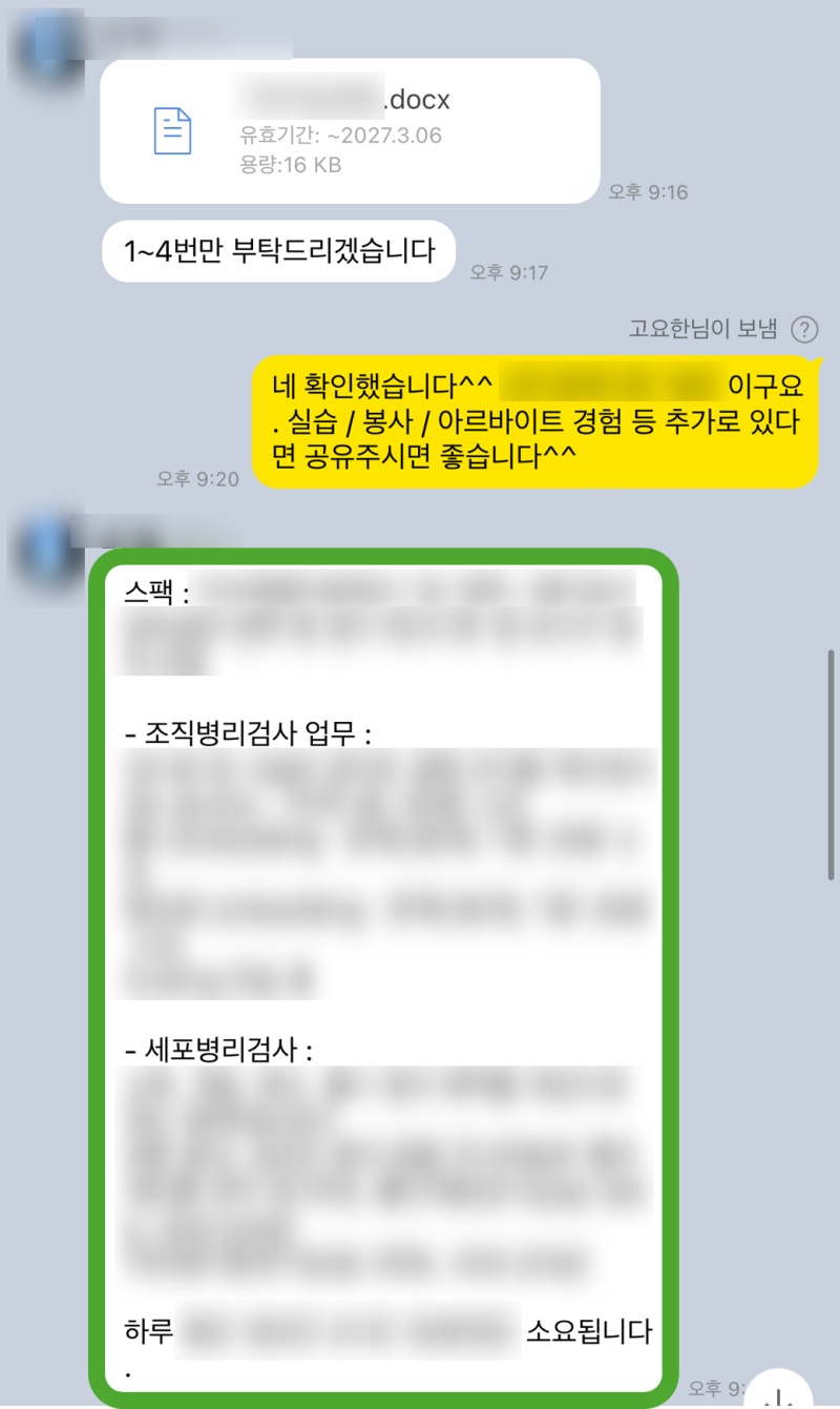 - >> 이력서 및 작성된 자기소개서(초안) 공유 📩