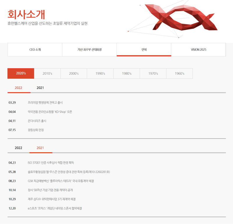 광동제약은 건강한 생활문화를 창조하는 초일류 기업이라는 비전 아래, 국민 건강 증진에 기여해 온 대표적인 제약 회사입니다. 비타500, 옥수수수염차 등 우리에게 친숙한 제품들을 생산하며, 꾸준한 연구 개발을 통해 OTC(일반의약품), 전문의약품, 건강기능식품, 음료 등 다양한 사업 포트폴리오를 구축하고 있습니다. 최근에는 바이오 신약 개발에도 적극적으로 투자하며 미래 성장 동력을 확보하고 있다는 점이 눈에 띄네요. 제약바이오 분야 취업을 준비하시는 분들이라면, 광동제약의 미래 성장 가능성에 주목해야 합니다!