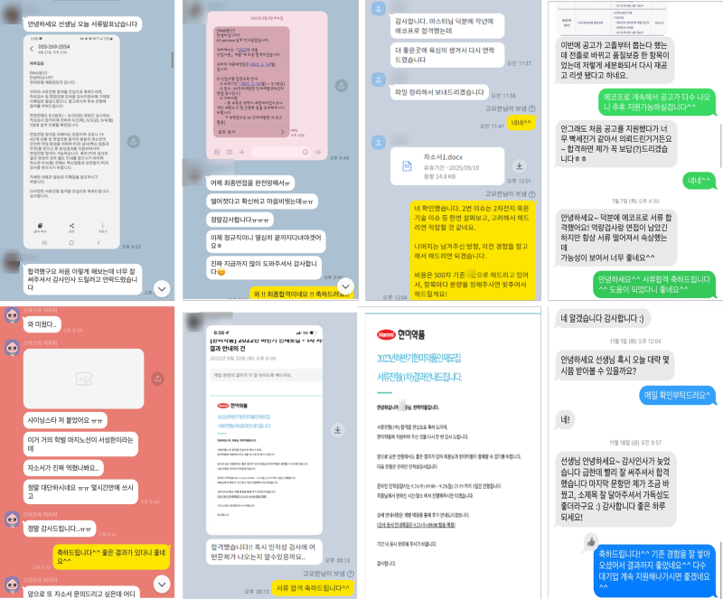 저는 1. 자기소개서 첨삭 및 대행 2. 학업계획서 3. 경력기술서 및 직무수행계획서 진행 4. 면접컨설팅을 진행하고 있습니다. 채용공고 분석부터 자소서 항목 및 문항 분석, 그리고 합격하는 자기소개서 작성 방법까지 아낌없이 공유드리고 있으니, 취업 준비에 어려움을 겪고 계신다면 언제든 문의주세요! 😊