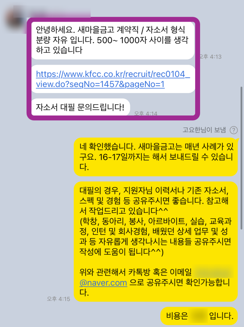 #자기소개서 #자소서 #자기소개서대필 #자소서대필 #자기소개서첨삭 #자소서첨삭 #취업컨설팅 #취업준비 #합격자소서 #대기업자소서 #신입자소서 #새마을금고 #새마을금고자소서 #새마을금고채용 #금융권 #자기소개서전문가 #취업성공 #서류합격 #첨삭전문가 #자기소개서의뢰 #취업고민 #기술직자소서#생산직자소서#채용공고#자소서예시#자소서대행#자기소개서대행#자소서항목#자기소개서문항#합격후기#이력서#경력기술서#직무수행계획서#연봉#자소서쓰는법#자기소개서쓰는법#사람인#잡코리아#자소설닷컴#자유양식