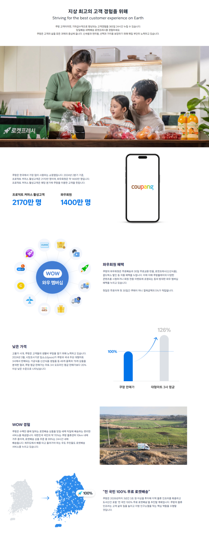 쿠팡은 대한민국을 대표하는 이커머스 기업으로, 혁신적인 물류 시스템을 구축하여 고객에게 빠르고 편리한 쇼핑 경험을 제공하고 있습니다. 특히 로켓배송은 쿠팡의 핵심 경쟁력으로, 전국 각지에 위치한 물류센터를 통해 고객이 주문한 상품을 빠르게 배송하는 서비스를 제공합니다.