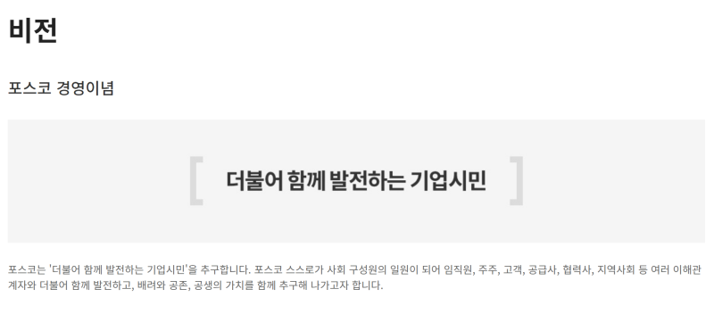 ◎ 비전: 인류의 지속가능한 미래를 이끌어가는 소재 전문 기업 (With POSCO, Beyond POSCO)