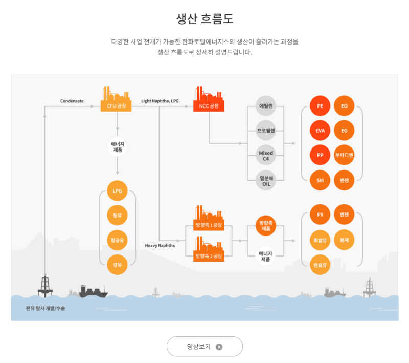 한화토탈에너지스는 한화그룹과 프랑스 토탈에너지스가 합작하여 설립된 종합 에너지-화학 기업이에요. 석유화학 분야의 에틸렌, 프로필렌 등 기초유분부터 폴리에틸렌, 폴리프로필렌 등 고부가 합성수지, 그리고 파라자일렌(PX), 스티렌모노머(SM) 같은 방향족 제품까지 다양한 제품을 생산하고 있죠. 🏭 최근에는 친환경 에너지 솔루션과 지속가능한 화학 소재 개발에도 힘쓰며 미래 성장 동력을 확보하는 데 집중하고 있는, 정말 탄탄하고 비전 있는 기업이랍니다! 💡