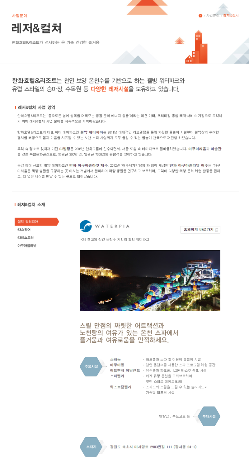 - 주요 사업: THE PLAZA 호텔 운영, 리조트 사업 (설악, 용인, 거제 등), F&B (레스토랑, 연회 등), 컨벤션, 면세점 사업 등