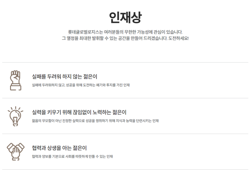 - – 가치관이 롯데글로벌로지스의 기업 문화와 부합하는지 고려해야 합니다.