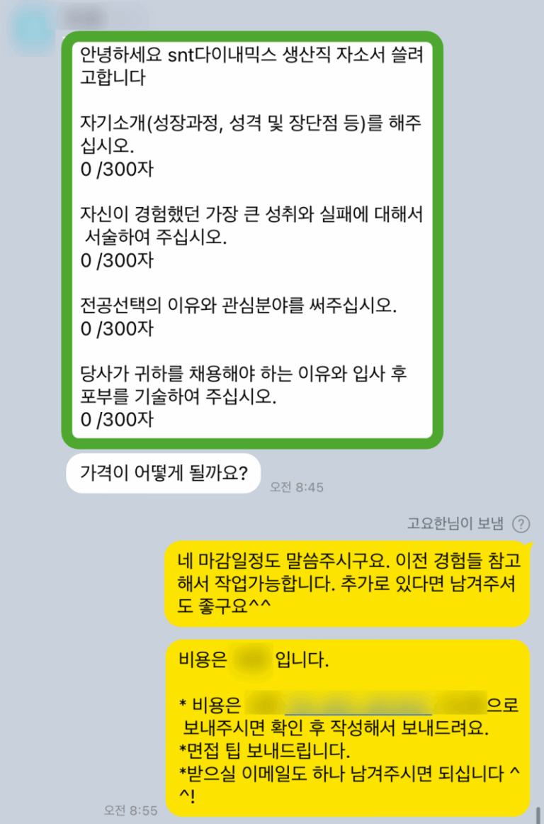 SNT다이내믹스 채용 자기소개서 문항 분석, 자소서 작성법 대필 후기