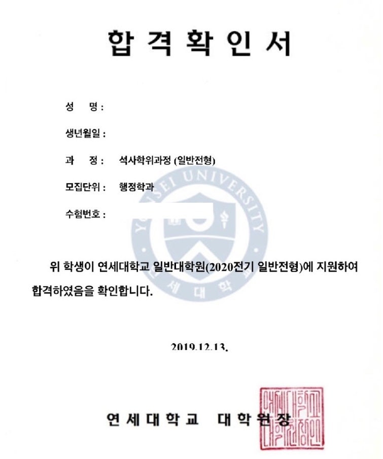 연세대학교 일반대학원 합격 후기, 학업계획서 첨삭 성공 사례